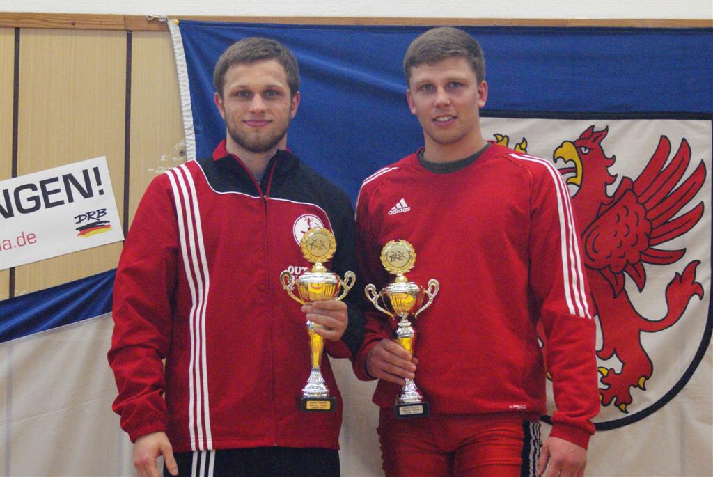 Titel Nummer 6 geht nach Warnemünde, Benjamin Sadkowiak (74 kg) gewann nicht nur Gold, sondern konnte zudem noch als bester Kämpfer der Freistiler ausgezeichnet werden, neben ihn holte ja noch Eric Pillat Silber an die Ostseeküste. Die Auszeichnung des besten Kämpfers im griechisch-römischen Kampfstiles ging nach Sachsen, Francis Weinhold vom KSV Pausa konnte den Pokal in Empfang nehmen nachdem er sich sicher in der 84 kg-Klasse durchgesetzt hatte. Titel 8 und 9 gingen dann nach Hessen und Brandenburg. Nils Böhm (74 kg) vom ASV Schaafheim und Richard Mahn (96 kg) für den RSV Hansa 90 Frankfurt/Oder sicherten sich die Landesmeisterschaft. Für M-V war auch der PSV Neubrandenburg am Start, leider blieb ihm ein erster Platz verweigert, aber mit Aslan Batalov (50 kg) sowie Schamal Batalov (60 kg) gab es Silber und Ozdamirov Badruddin (74 kg) gewann am Ende Bronze.